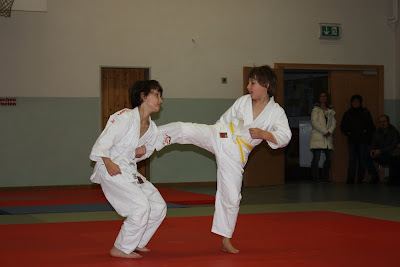 Diesmal fand die Prüfung zum 5. Kyu, dem gelben Gürtel statt. Auch mit dabei war unser kranker Ju-Jutsuka der vergangenen Woche, der gestern seine Prüfung zum 6.2. Kyu, dem weißen Gürtel mit gelbem Streifen ablegen konnte.